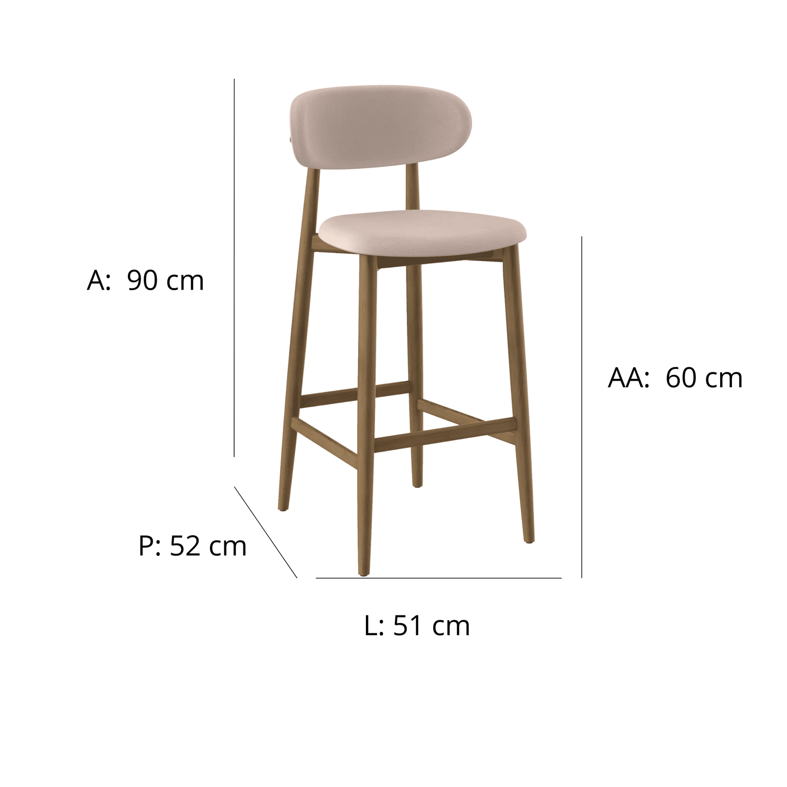 Banqueta Sienna 60 cm: Altura do assento: 60 cm | Altura total: 90 cm | Largura: 51 cm | Profundidade: 52 cm