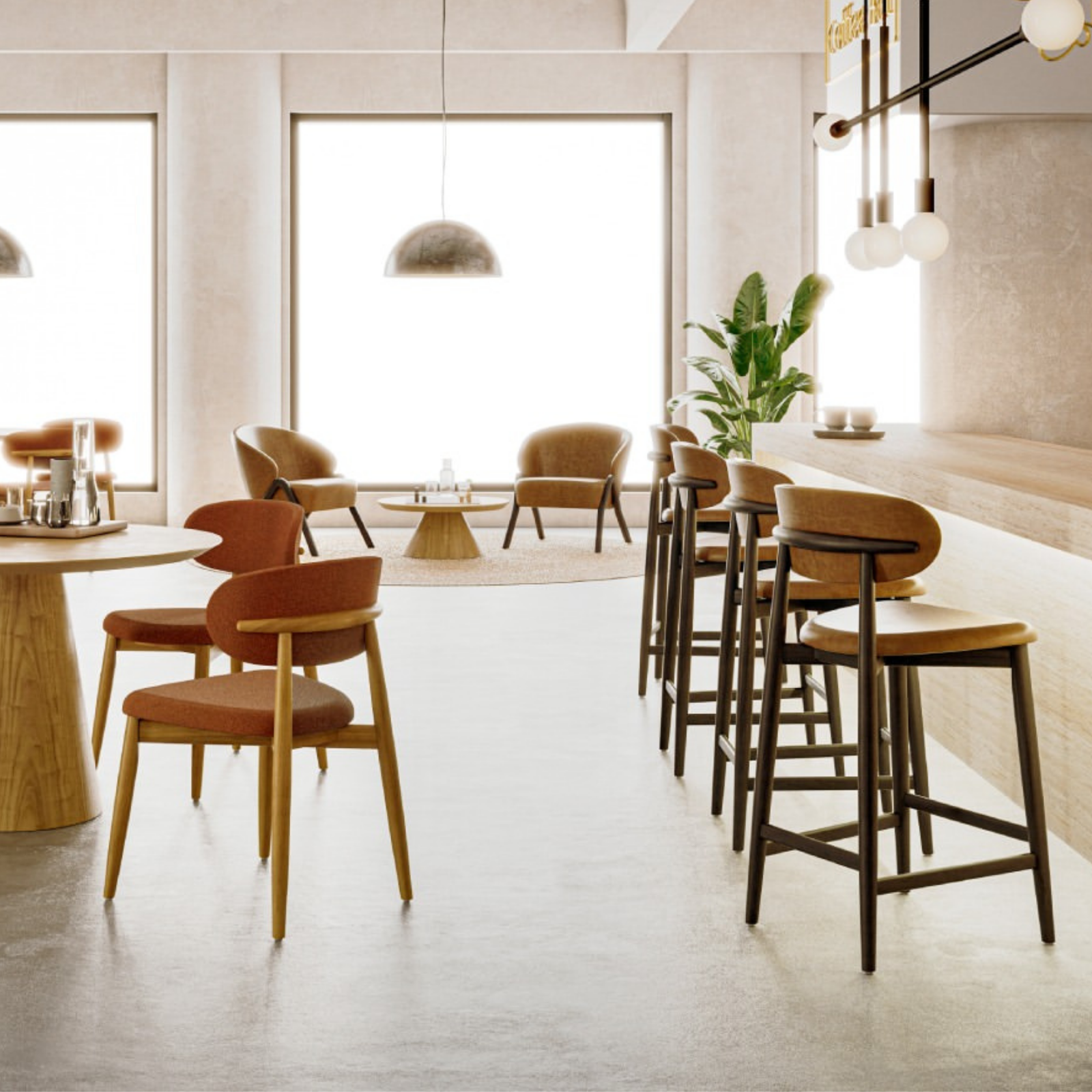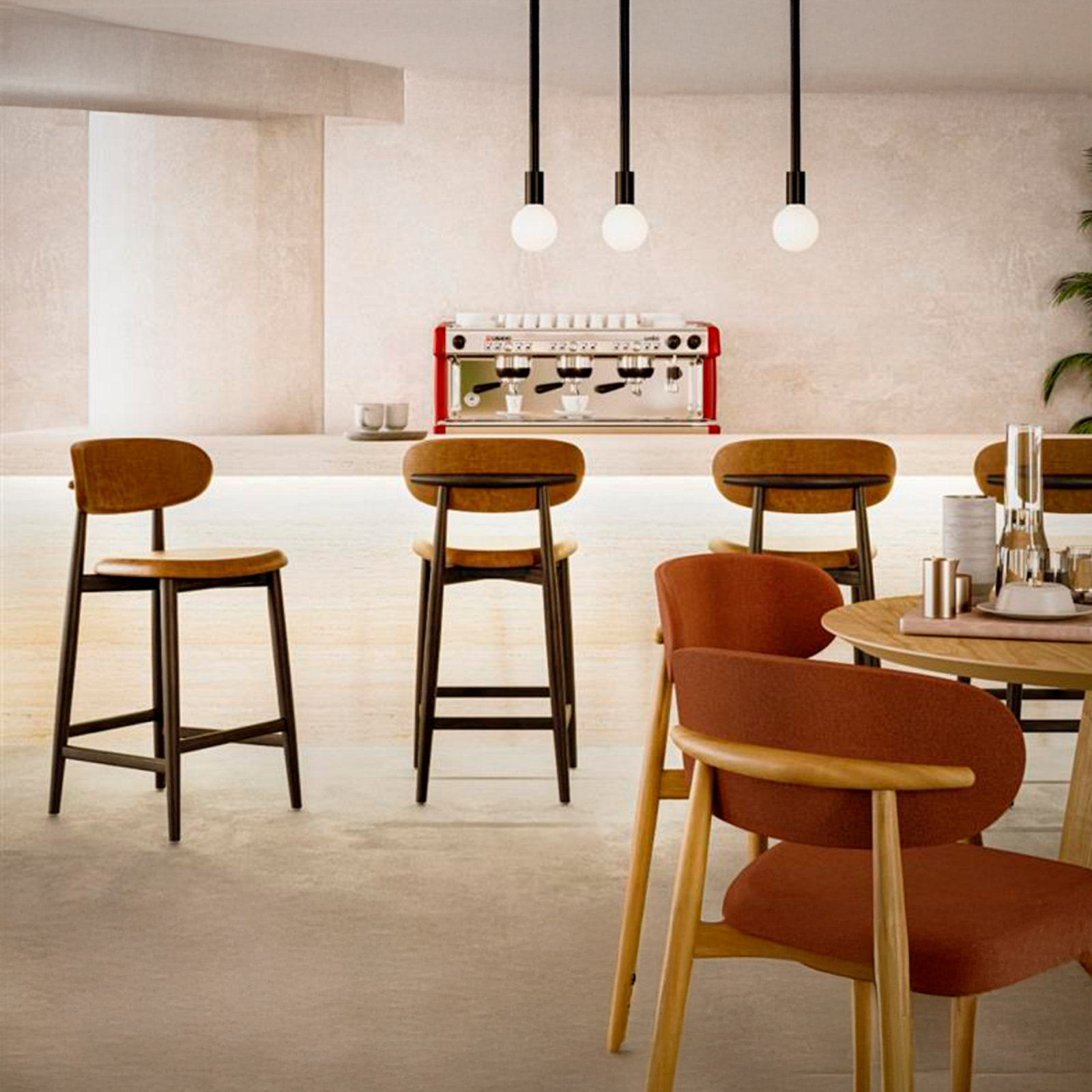 Ideal para compor cozinhas gourmet, bancadas sofisticadas ou espaços de convivência, a Banqueta Sienna combina presença marcante e conforto excepcional com um visual leve e elegante.