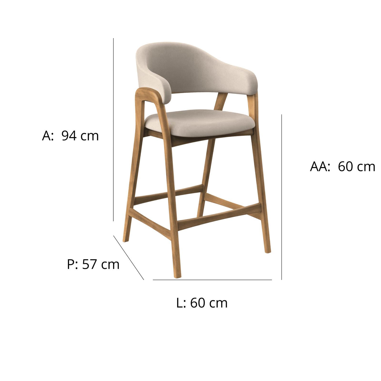 Banqueta Tessa 60 cm: Altura do assento: 60 cm | Altura total: 94 cm | Largura: 60 cm | Profundidade: 57 cm