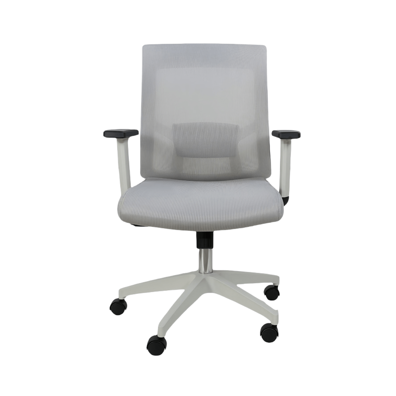 Seu encosto em tela favorece a ventilação e proporciona apoio adequado para as costas, contribuindo para maior conforto térmico e melhor postura ao longo do uso diário. O assento estofado garante maciez e sustentação, tornando a experiência mais agradável mesmo em longos períodos de trabalho. Os braços integrados reforçam a ergonomia, oferecendo apoio funcional sem comprometer a leveza visual da peça.