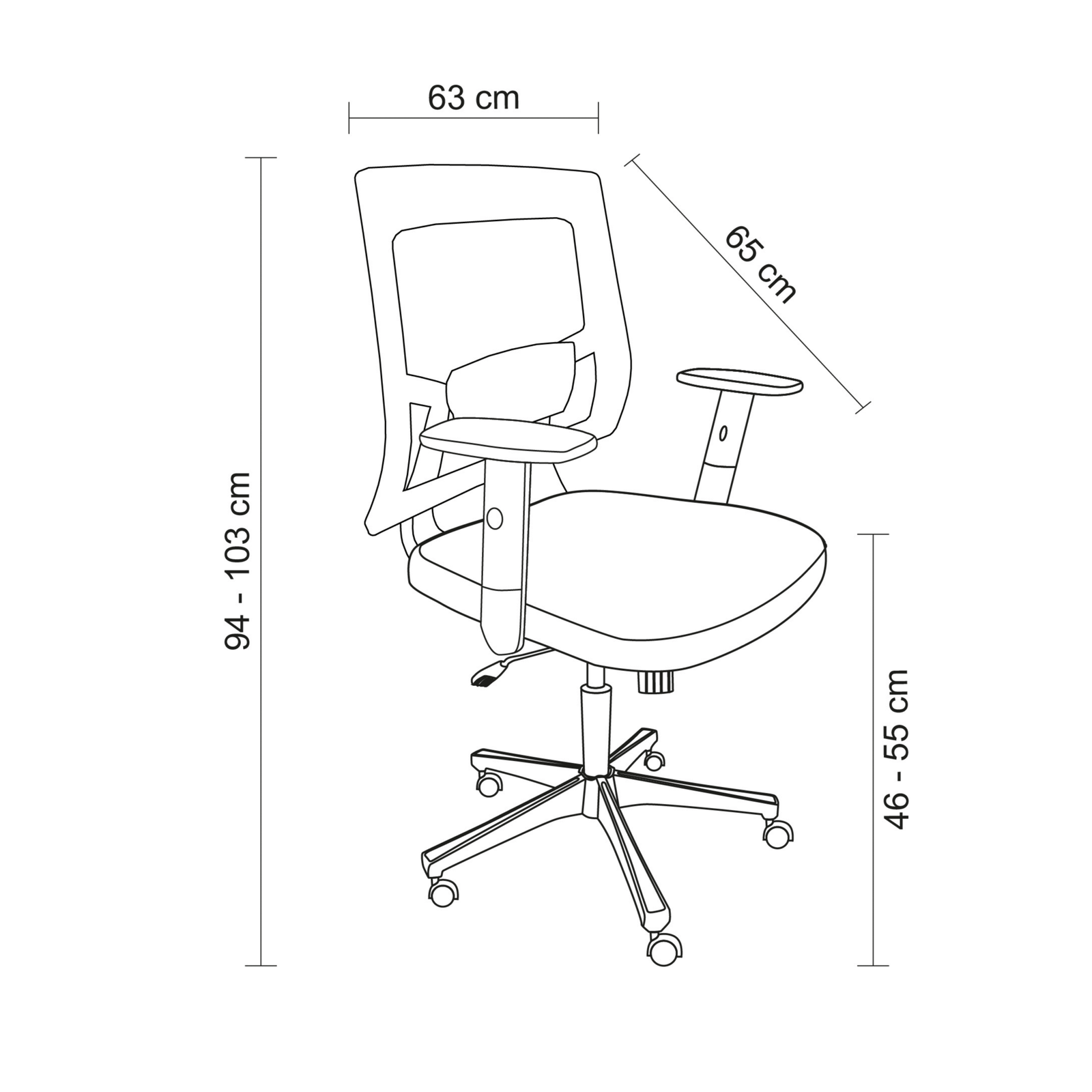 • Encosto em Tela Respirável: Proporciona ventilação contínua e apoio ergonômico para a região das costas.