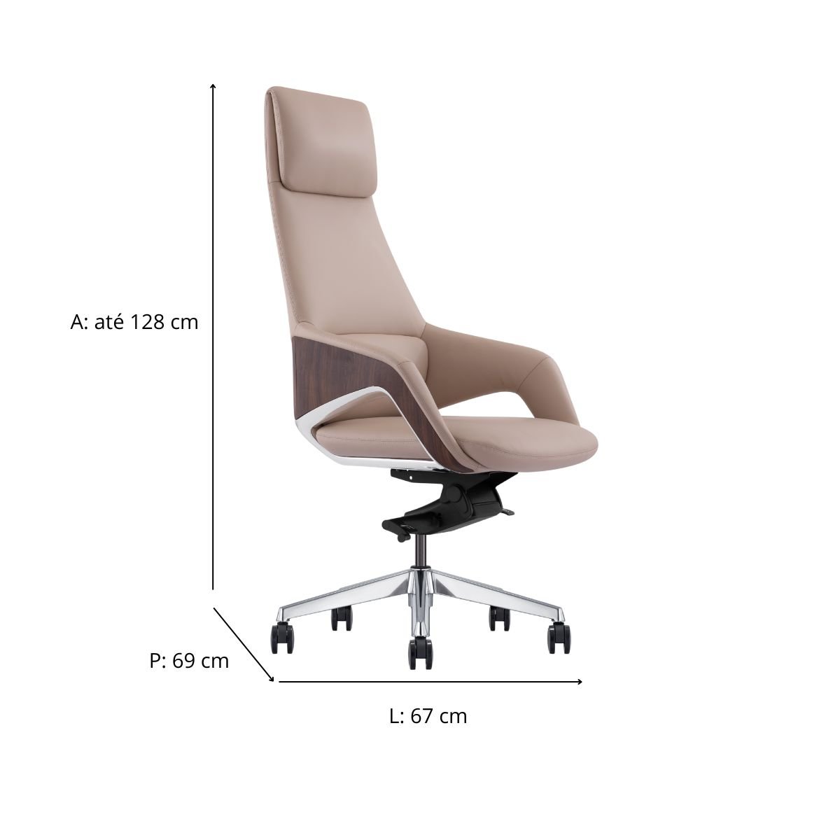 Seu revestimento em couro sintético (PU)  transmite sofisticação imediata, enquanto o encosto alto reforça a postura e valoriza o espaço com um visual contemporâneo e imponente. Assim, a Ergoon se torna a escolha ideal para escritórios de alto padrão e ambientes corporativos exigentes.