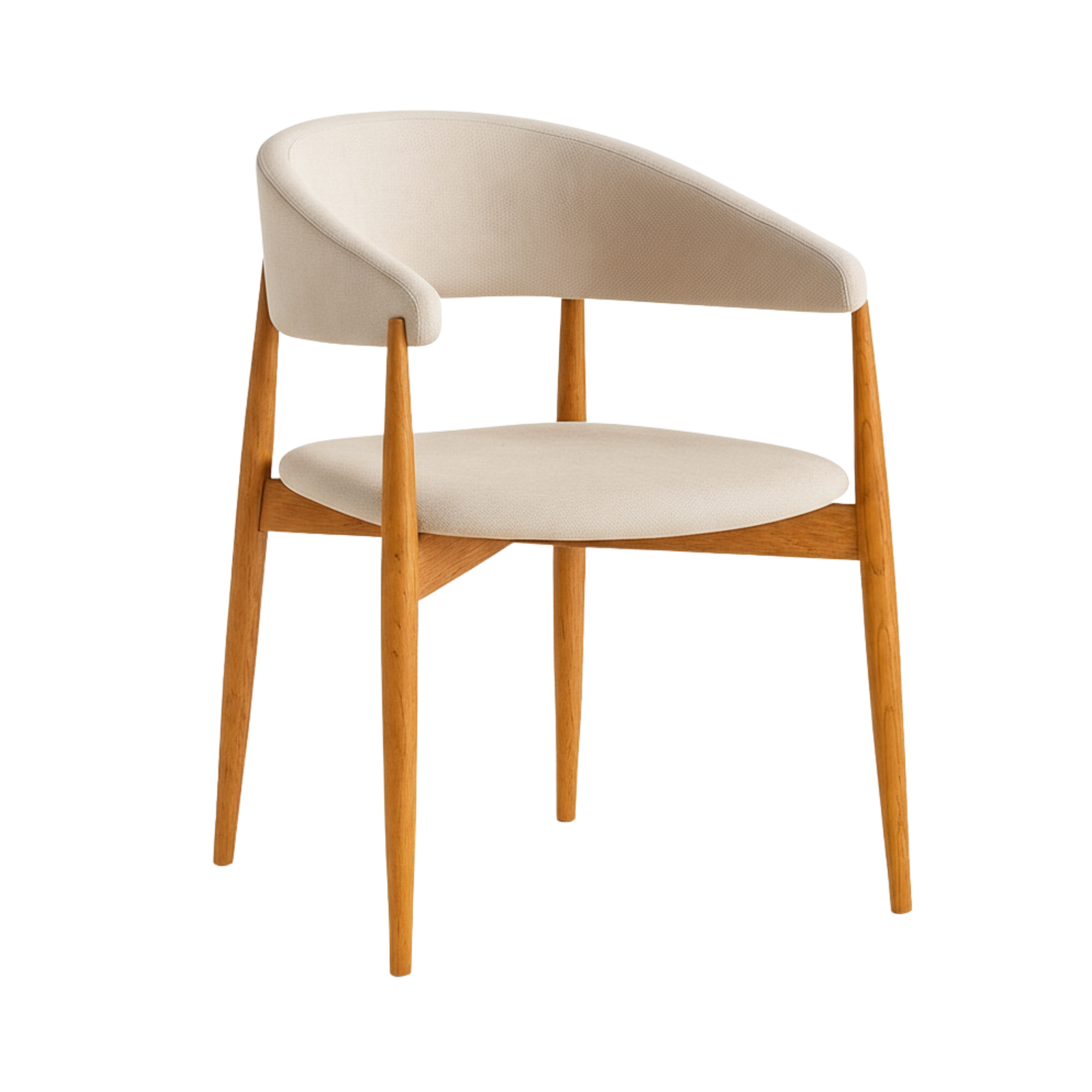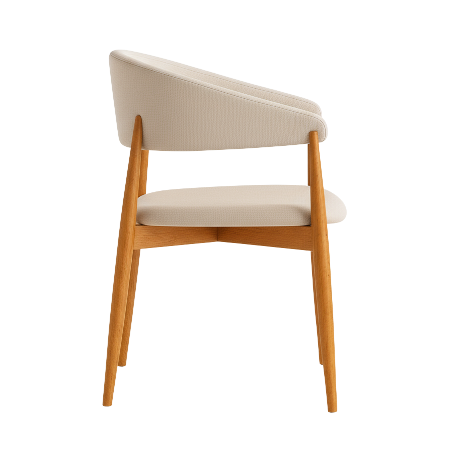 Com curvas sutis e proporções equilibradas, a Vivi valoriza composições com mesas de madeira, pedra ou vidro. Além disso, permite variações de tecido e acabamento para atender diferentes estilos de projeto, do contemporâneo ao escandinavo.